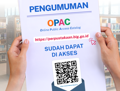 Cibinong, 9 Februari 2026 — Online Public Access Catalog (OPAC) Perpustakaan Badan Informasi Geospasial kini telah dapat diakses oleh publik melalui laman https://perpustakaan.big.go.id. Layanan ini dihadirkan sebagai bagian dari upaya peningkatan kualitas layanan perpustakaan serta penguatan transformasi digital di lingkungan Badan Informasi Geospasial.